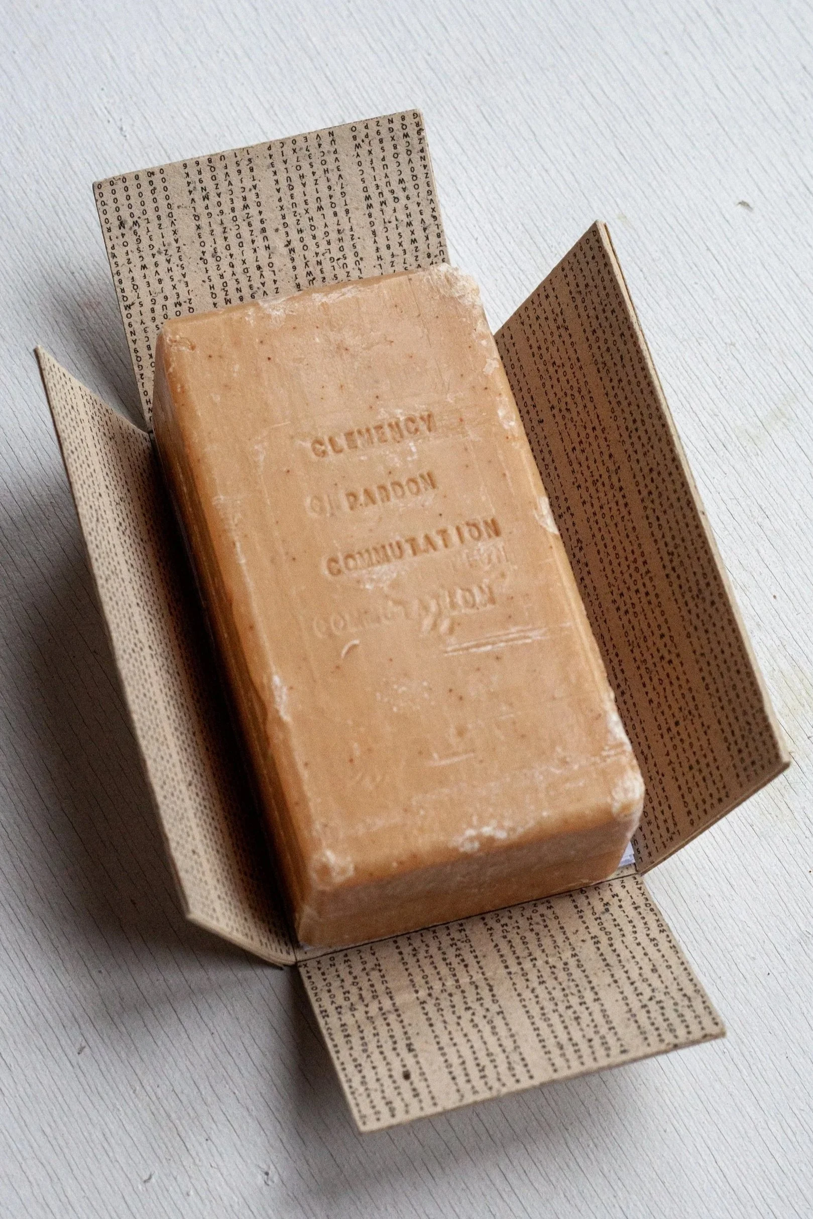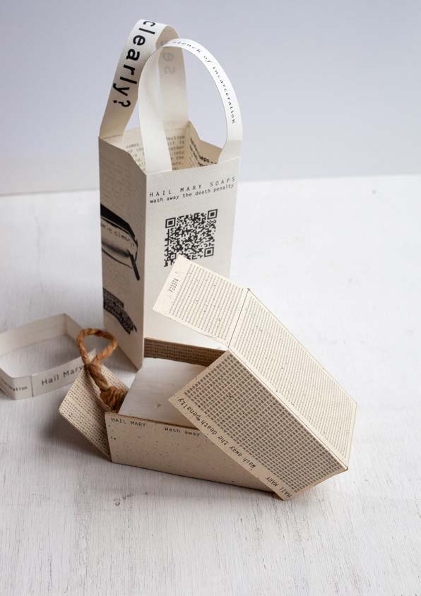 From California’s death row, Hail Mary Soap, is an object of reflection and a call to action at once. Created by Timothy James Young, wrongfully imprisoned for 27 years, and Sofia Karim, the artwork is a continuation of their 2025 project Hail Mary, calling upon governor Gavin Newsom to end the death penalty, and calling upon us all to reflect on the brutal, unholy and uncivilized practice of capital punishment and its racial dimensions.